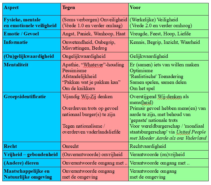 'in mineur') en het hoogste maatschappelijke (spel)doel is Vrede 2.0