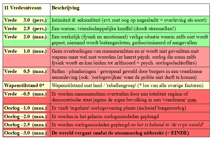 (psychologische) oorlog en vrede, geldt Het Vredesmodel. Daarin worden verschillende stadia van oorlog naar vrede geordend. Daarbij wordt