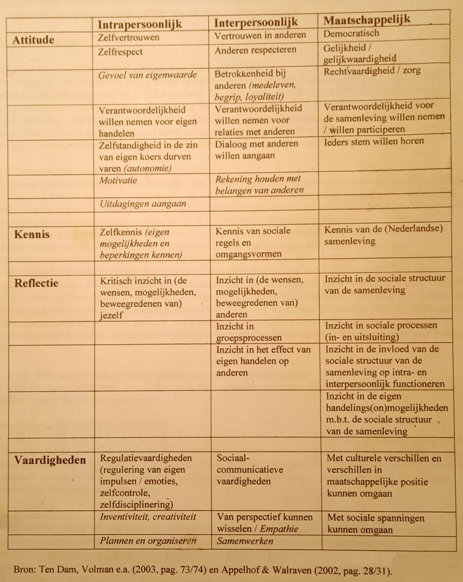 bevorderen van iemands sociale competenties. Deze tabel (uit mijn
